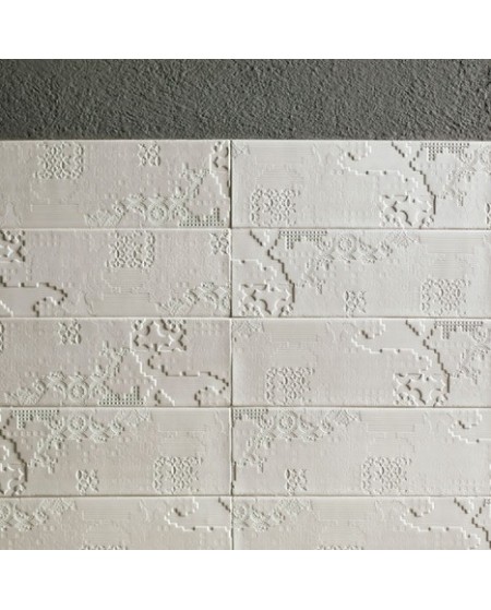MUTINA BAS-RELIEVE DECORADO PATCHWORK Este producto se vende por cajas, cada caja contiene 0.97 m2 (10 piezas de 18x54). A elegir en 3 colores, bianco, nero o cipria Diseñado por Patricia Urquiola.