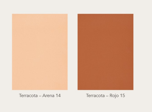 Celosía decorativa de cerámica tanto para interior como exterior, disponible en los colores terracota arena 14 y terracota rojo 15. Formato pieza 29x14x7cm.