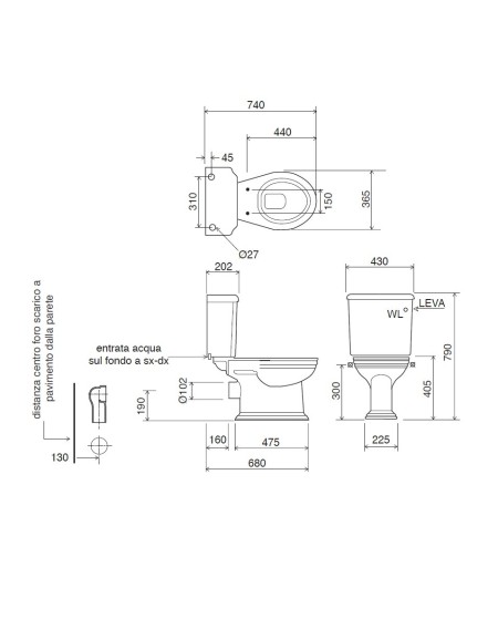 Gentry Home Victorian inodoro monobloque completo en porcelana + asiento madera Kaoba. La palanca de la cisterna viene en diferentes acabados a elegir (cromo, incalux, bronze y oro)