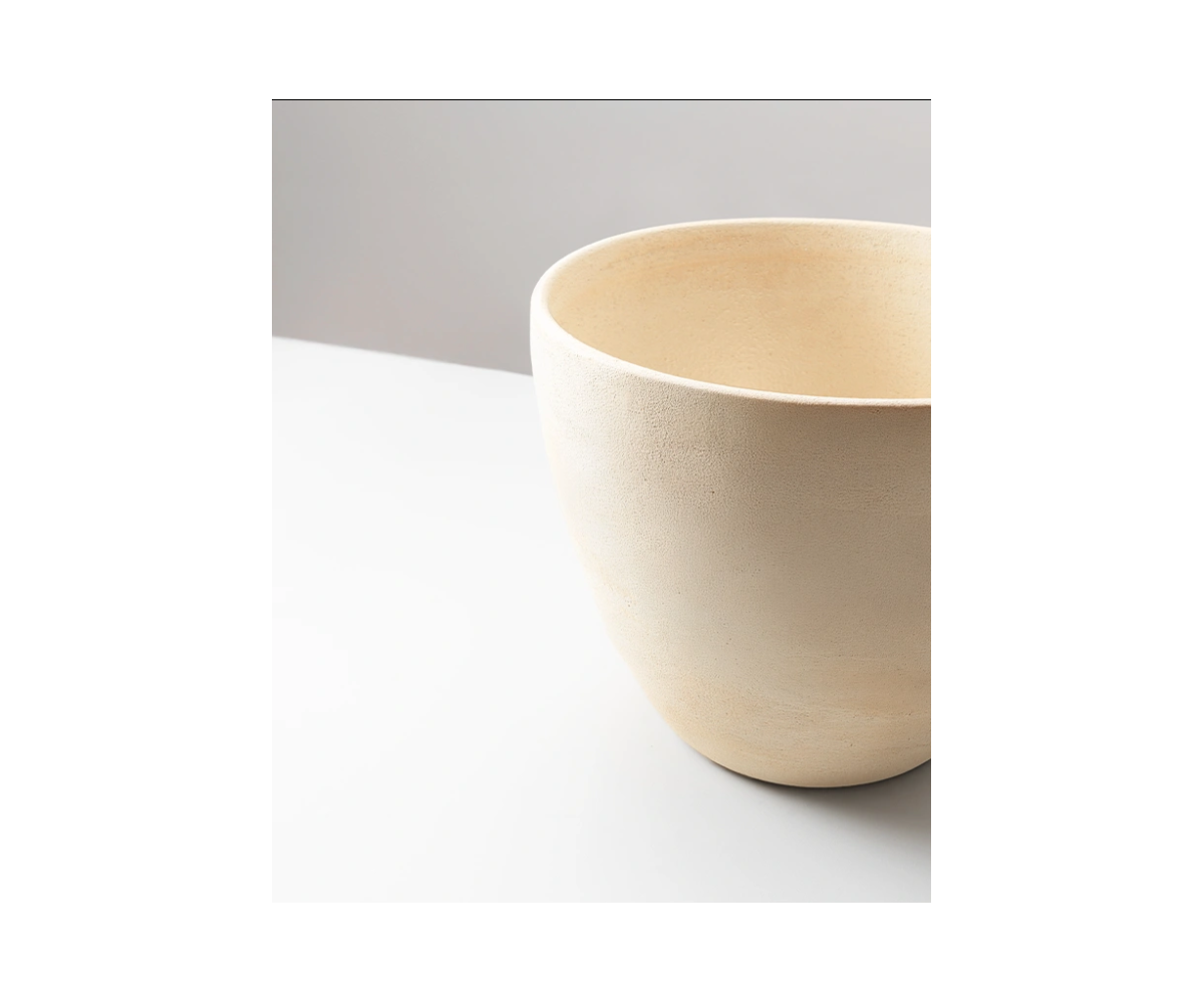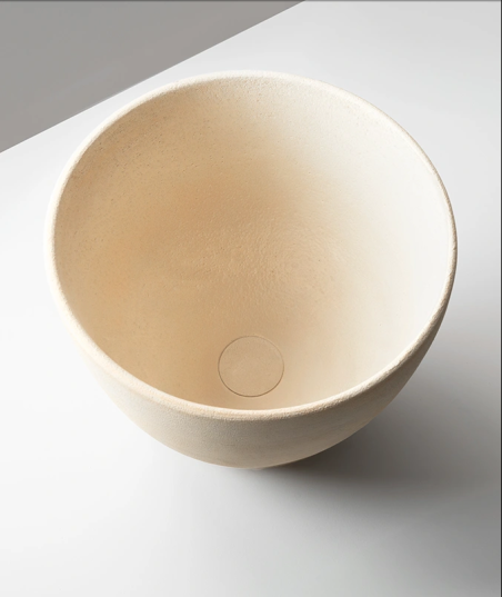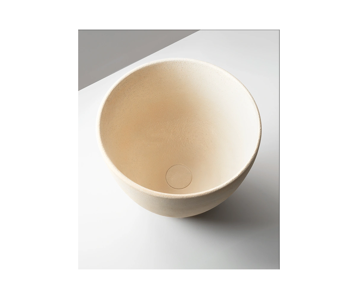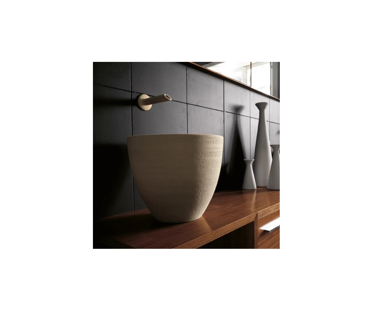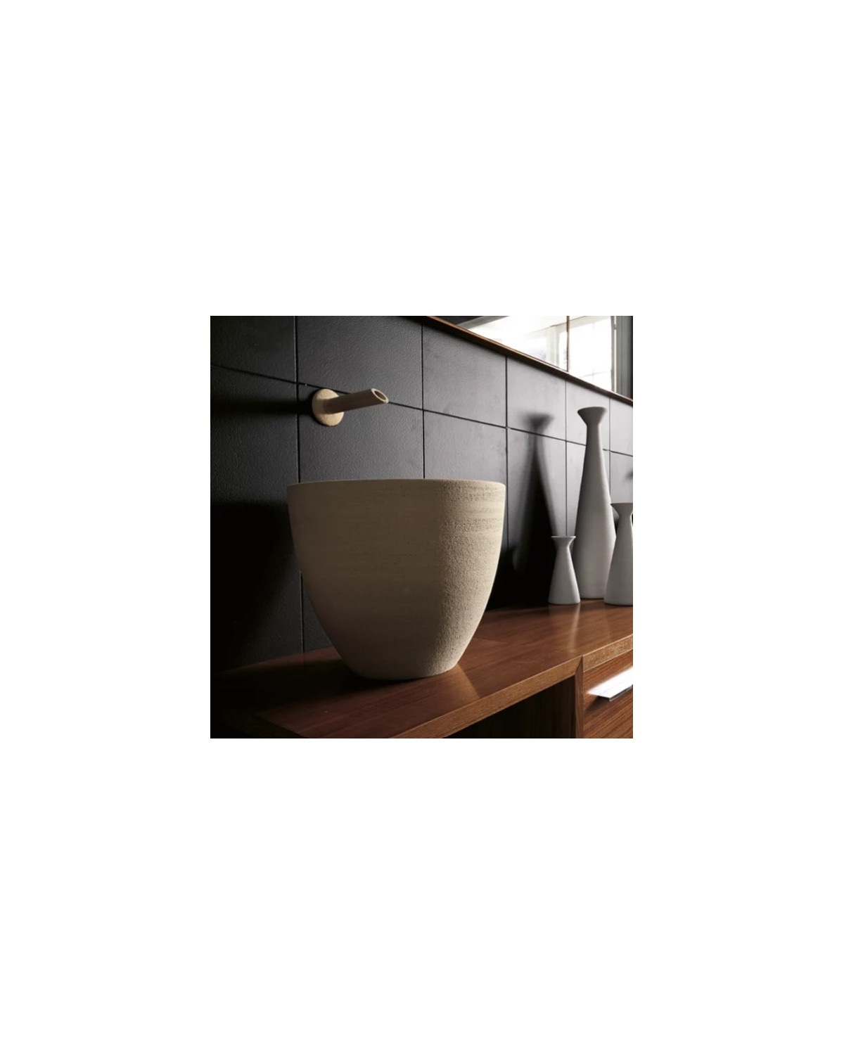 Terzofoco Materic Line Cono Natural, es un lavabo sobre encimera de arcilla raku torneado a mano. Válvula incluida.